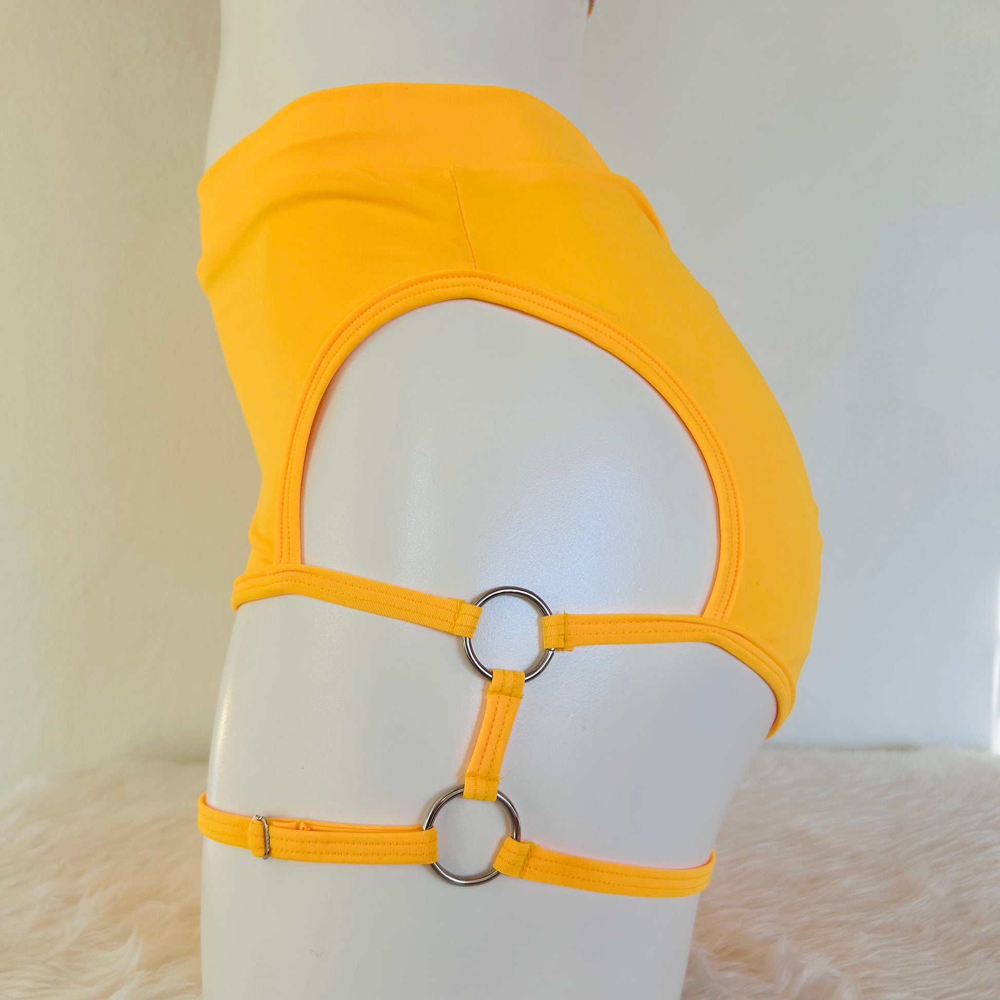 Su diseño de talle alto con doble arnés ajustable estiliza tus piernas y acentúa la silueta, ofreciendo soporte, comodidad y un toque audaz.