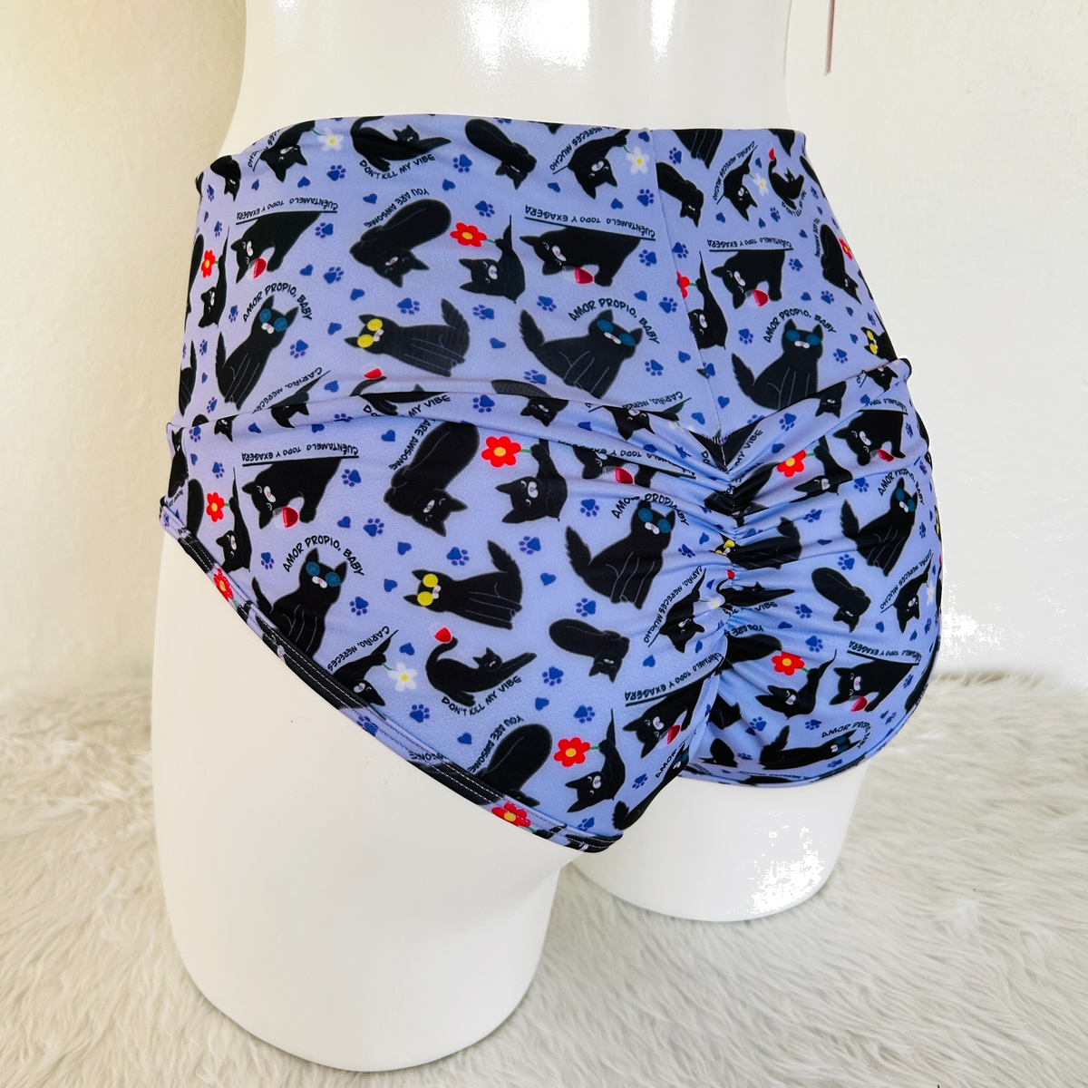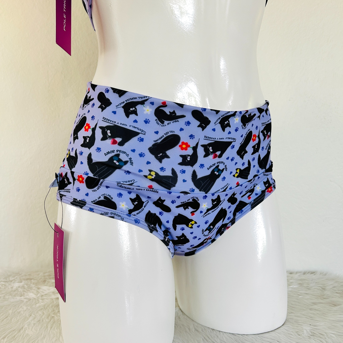 Cachetero con pretina alta y divertido estampado de gatitos.