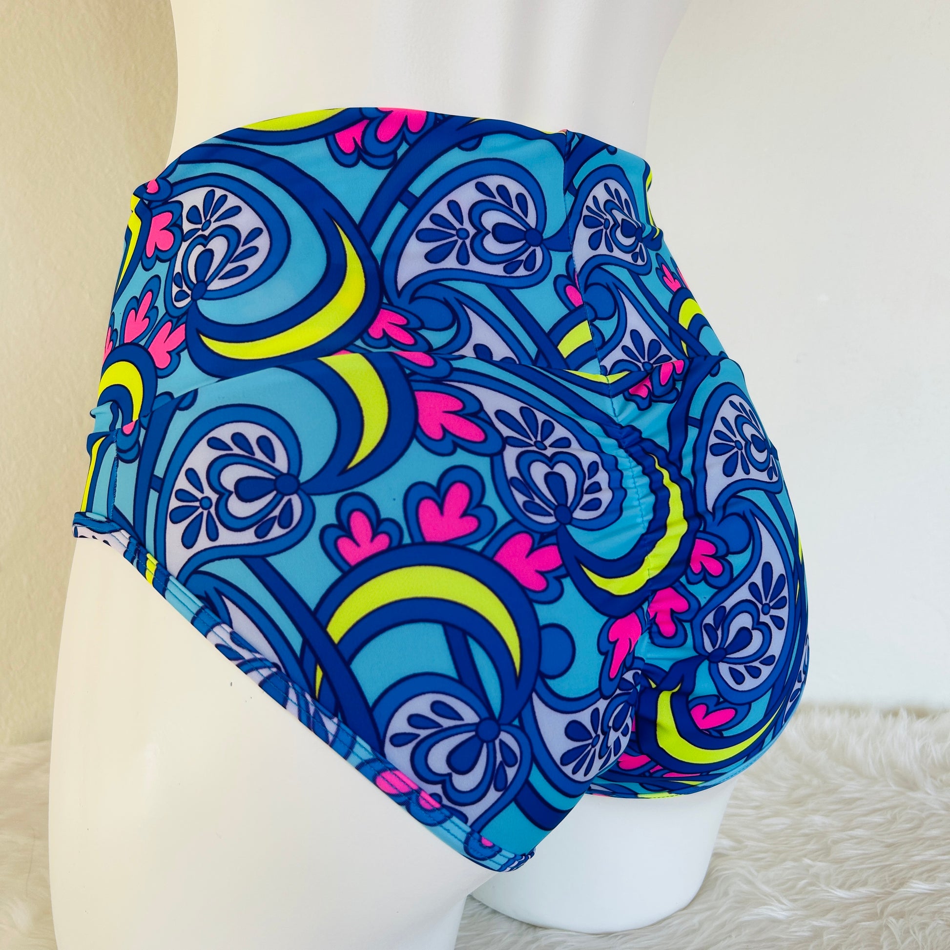 Su estampado azul vibrante con detalles neón crea un look dinámico que destaca en el pole. El corte cachetero brinda cobertura cómoda y libertad de movimiento, ideal para entrenar, practicar figuras o crear coreografías.