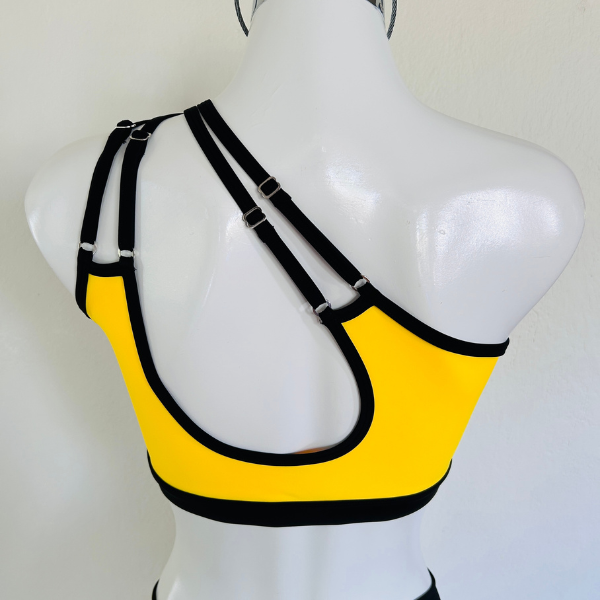 Brilla con el Top Asimétrico Luz Amarillo Neón, una prenda que combina estilo, soporte y actitud. Su diseño de tiras cruzadas en un solo hombro aporta dinamismo y un toque atrevido, ideal para quienes aman destacar en cada movimiento.