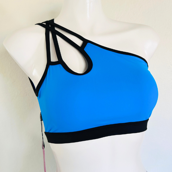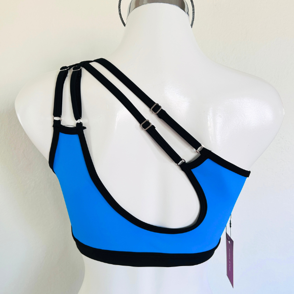 El Top Asimétrico Luz Azul Neón es la fusión perfecta entre energía y elegancia. Su color vibrante y diseño con tiras dobles en un solo hombro realzan tu figura y aportan un toque moderno a tu look deportivo.