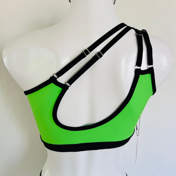El Top Asimétrico Luz en tono verde neón combina energía, soporte y estilo en una prenda diseñada para destacar. Su diseño de un solo hombro con tiras dobles cruzadas aporta un toque moderno y dinámico, ideal para tus rutinas de pole dance, fitness o yoga.