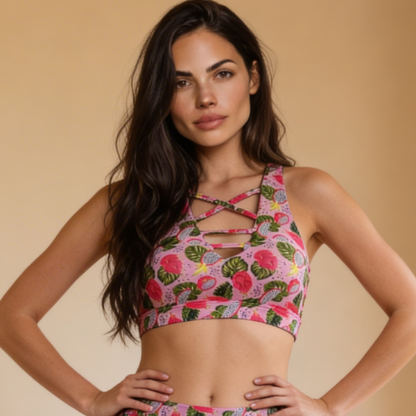 Diseñado para moverte con seguridad y estilo, el Top Xena combina un corte cruzado al frente con un print vibrante de corazones que celebra la fuerza y la feminidad.